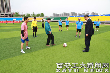 最后,刘建勋代表学校发表了热情洋溢的讲话,他向足球校友分会的成立表示热烈的祝贺,向在座的校友介绍了学校的发展变化,表示校友是西安工大最宝贵的财富,西安工大的每一步发展都离不开校友的支持,接着向足球校友分会提出希望,希望足球校友分会组织好、团结好爱好足球的各地校友,搭建好学校与校友及校友之间的联谊平台,为母校的发展出谋献策。
