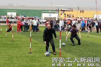 开幕式结束后,比赛正式开始。本次比赛项目有跑步、跳高、跳远、接力、引体向上、仰卧起坐等。运动会上,运动员们你追我赶、配合默契、热情高涨,充分展示了西工学子奋发向上的风采和较高的体育竞技水平。百米跑道上,随着开跑信号的发出,早已准备就绪的运动健儿身手矫健,似利箭般冲向终点,来自电信学院的张旭晨以11ˊˊ67的好成绩夺得学生男子组100米决赛的冠军。更有建工学院的王弘恺和体育学院的王敏在学生男子特有的比赛项目引体向上中,凭借着良好的耐力,优异的成绩,并列第一名。跳高健儿们用离弦箭似的助跑,羚羊般轻巧的起跳,完成了一次次高度的跨越。3000米的路上,西工男儿以无比顽强的意志向自己的目标不断挺进,坚定有力的步伐是西工人心中永远的骄傲。接力棒的传递,不仅仅考验的是运动员们的速度,还有他们之间的反应力、默契与配合程度。4×100米接力赛中,经管学院和体育学院的娘子军们以雄厚的实力向现场观众提交了一份满意的答卷。
