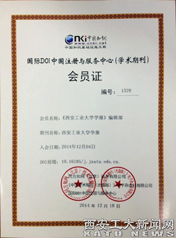 (本网讯)近日,《ac米兰官方网站学报》编辑部与CNKI国际DOI中国注册与服务中心合作,已成为国际DOI中国注册与服务中心(学术期刊)会员。自2015年第1期开始,刊发的每篇论文在首页的左上角将标识DOI编码,编码形式为:10.16185/j.jxatu.edu.cn.2015.01.001。
