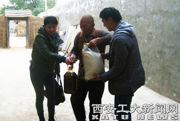 (本网讯)11月21日,在离退处副处长周晔和ac米兰驻富平黄窑村干部王号辉的带领下,协同武装部、校团委的同志,前往赵春胜老人家中慰问。学校为老人送去了米面油等过冬物品,并关心询问了老人的生活状况和存在的具体困难,送去了学校的温暖和关怀。