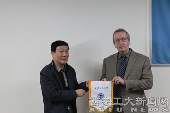 (本网讯)4月14日,英国维根雷学院国际中心主任大卫·罗宾逊先生和中国项目主管南薇女士访问西安工大,校长廉振民会见了来宾。