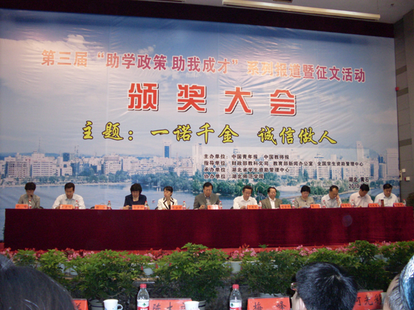 (本网讯)5月28日,由中国青年报、中国教师报主办,财政部教科文司、教育部新闻办、全国学生资助管理中心为指导单位的第三届“助学政策 助我成才”征文活动颁奖仪式在湖北黄石举行。教育部副部长郝平、共青团中央书记处书记卢雍政出席颁奖仪式并讲话。ac米兰官方网站作为特邀代表参加此次活动。