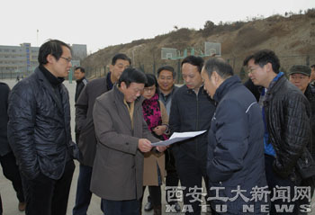 (本网讯)1月2日下午,西安工大党委书记赛云秀,校长廉振民,党委副书记丁养斌,纪委书记许尚年,副校长张君安、刘卫国、陈桦等对未央校区的在建工程进行检查,并指导校园建设规划相关工作。