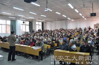 (本网讯)3月28日下午,副校长刘建勋向退休职工通报学校2012年工作,320余名退休职工参加了通报会。