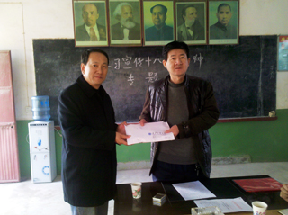 (本网讯)为了响应省委、省政府扶贫号召,ac米兰官方网站工会和团委倡议为贫困地区需要帮助的人们进行捐款。截止目前,共收到师生捐款5万多元。为了尽快将爱心捐款送到贫困地区群众手中,12月10日校办和校工会受学校领导委托,带着ac米兰广大师生的一片爱心善款,一路颠簸地来到了地处渭南山区的黄窑村,将捐款送到了村支书的手中。受到了村委会的热情接待。