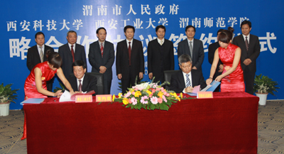 当天,与渭南市政府签约的高校还有西安科技大学、渭南师范学院。