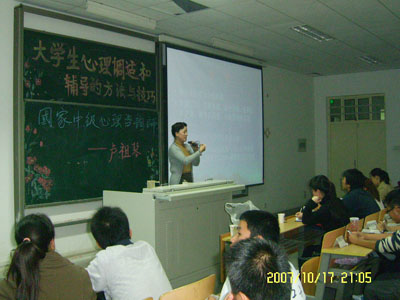 (本网讯)ac米兰官方网站重视学生心理健康教育,加强校内三级心理保健网络建设,在全校每个班级设立了心理委员,负责班级心理健康教育的工作。10月17日,特邀陕西心理学会、吉迦心理研究所国家中级心理咨询师卢祖琴老师为全校心理委员们作了一场题为《大学生心理调适及心理辅导的方法和技巧》的培训讲座。