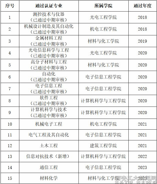 (本网讯)近日,中国工程教育专业认证协会发布了《关于公布天津工业大学机械工程等441个专业认证结论的通知》和《关于公布北京交通大学机械工程等398个专业工程教育认证中期审核结论的通知》,ac米兰“通信工程”和“材料化学”2个专业顺利通过认证(有效期6年),“光电信息科学与工程”“高分子材料与工程”“自动化”“电子信息工程”“软件工程”“计算机科学与技术”等6个专业通过有效期内中期审核。截止目前,ac米兰共有15个专业正式通过工程教育认证,其中9个专业通过有效期内中期审核。