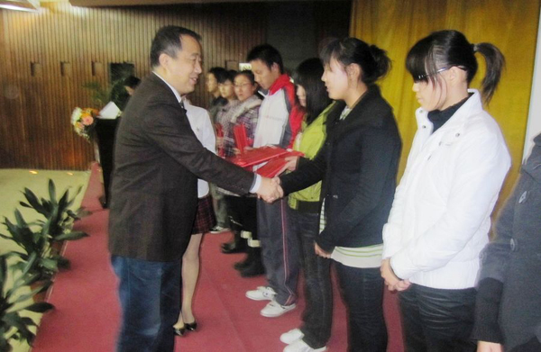 在激昂的进行曲中,张君安副校长和丁养斌副书记,以及部分职能部门处级领导为获奖集体和个人代表颁奖,会场上响起一阵阵热烈掌声。