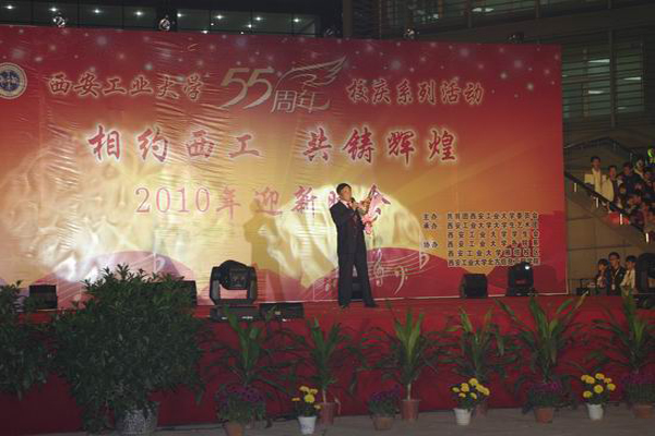 (本网讯)为喜迎建校55周年与2010级新同学,10月17号晚,由校团委主办的ac米兰官方网站55周年校庆系列活动之“相约西工 共铸辉煌”2010年迎新晚会在未央校区隆重举行。校党委书记赛云秀、副校长张君安、校党委副书记丁养斌、校党委副书记于孟晨、副校长陈桦以及党办校办、党委组织部、党委宣传部、教务处、学生处、雁塔校区、北信学院等部门领导,以及各院(系)分党委(党总支)书记、新生辅导员老师与ac米兰5000余名新生一同观看了晚会。