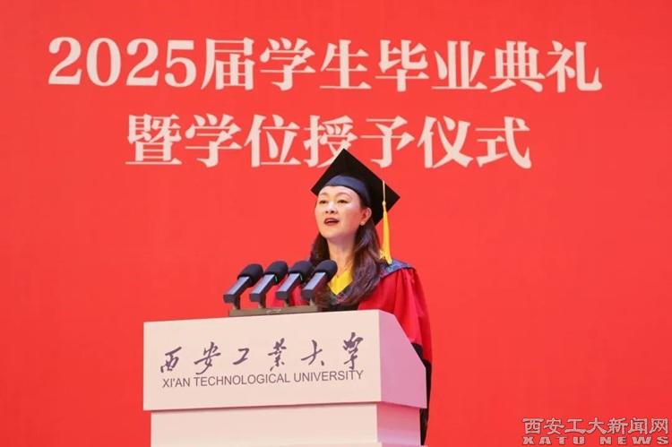 本科毕业生代表贠欣欣同学发言:未来,无论是在基层一线践行服务初心,还是在科技创新中勇攀高峰,亦或在国际舞台发出中国声音,我们都将以西工精神为帆,以青春使命为舵,既有“会当水击三千里”的豪迈,更守“一片冰心在玉壶”的纯粹,让青春在时代的星河中闪耀母校的独特光芒。