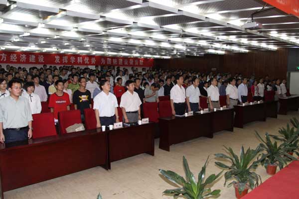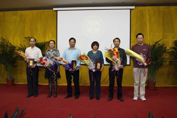 大会在雄壮的国歌声中开始。副校长刘建勋宣读了《关于表彰二〇一〇年度校级优秀教师、优秀教育工作者的决定》、《关于表彰2010年度师德先进集体、师德标兵的决定》及获得省级教学名师、省级师德建设先进单位、省级师德先进个人名单。校领导为获奖集体及个人颁发了奖牌及荣誉证书,学生代表为获得省级教学名师及师德先进集体及师德标兵献上了鲜花。