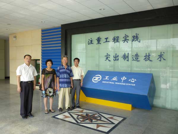 随后马德通教授夫妇参观了兵器馆、图书馆、工业中心、武装部。在工业中心,马教授的学生现工业中心主任马宝吉陪同讲解。马教授看到学校狠抓工程实践教学,立足对本科生进行工程素质教育和技能培训,非常高兴,兴致勃勃地参观了多个实验室,尤其看到与自身研究的机械特种加工相关项目时,更是十分兴奋,不时与身边的同志们展开交流。