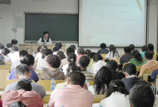 校党委书记赛云秀首先进行了讲座,他就工会的地位与作用及工会干部的职责、工会在教书育人工作中如何发挥作用、工会在教育教职工提高教育教学水平中如何发挥作用三个方面结合实际提出了要求。他指出:学校工会多年来服务于学校、服务于教职工,取得了显著的成绩,得到了上级领导的充分肯定,希望这届基层工会与校工会共同努力,把工作越干越好。