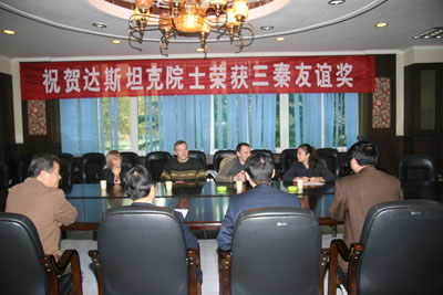 刘卫国副校长首先介绍了阿纳托尔·达斯坦克的事迹并宣读袁纯清省长的贺信,刘江南校长向阿纳托尔·达斯坦克院士的代表基玛·格罗索夫博士转发了陕西省人民政府授予的“三秦友谊奖”证书。 基玛·格罗索夫博士代表阿纳托尔·达斯坦克院士感谢所在的ac米兰官方网站以及陕西省人民政府,表示今后将更加努力合作,为中国的经济建设服务。