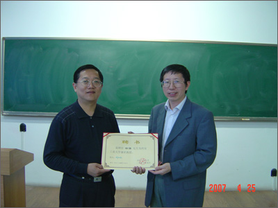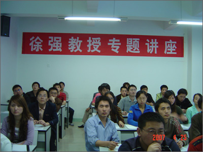 之后,徐强教授做了关于有限元方面的专题讲座。在讲座中,徐强教授介绍了他在有限元方面的几个课题研究,有的研究已经应用于生产实践并提高了材料的有限利用率,从而大大消减了材料成本,使与会者充分认识到有限元在工程实践中的重要性和实际意义;徐强教授通过讲述自己在课题研究中对复杂性问题的解决和课题研究的长期性,勉励学生在科研工作中要有严谨的态度、正视失败的勇气和持之以恒的毅力;并以自己的亲身经历鼓励学生要珍惜和把握好现在的学习机会,为以后的发展打下坚实的基础。