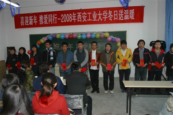 活动仪式上,学生工作部有关领导为39名2008年度西安工大“自强之星”学生颁发了证书,为14名贫困学生发放了爱心补助金,为全体参会学生发放了爱心礼品——保温杯。