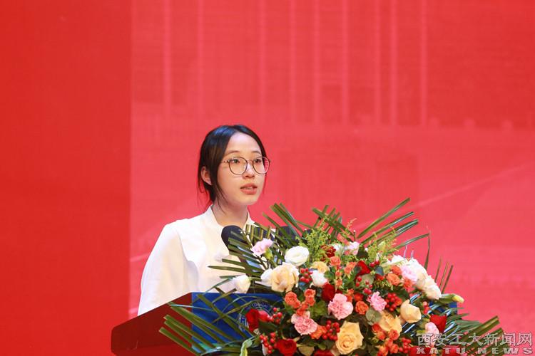 研究生新生代表机械制造及其自动化专业郭琢玉同学在发言中呼吁同学们,要以高度的责任感和使命感,关注社会发展,关心国家命运,努力将个人的理想融入到国家和民族的伟大事业中。