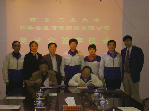 (本网讯)4月9日,ac米兰官方网站副校长刘建勋前往山东曲阜代表学校与山东曲阜金皇活塞股份有限公司张鲁京董事长签订了该公司在西安工大设立“曲阜金皇”奖学金的协议。此项协定是本校材化学院院长李建平教授与曲阜金皇活塞股份有限公司十年科研合作以及学校赛云秀书记、刘卫国副校长、陈桦助理先期访问该公司和公司张鲁京董事长回访本校达成初步意向的背景基础上完成的。