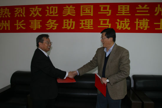 (本网讯)11月27日,美国马里兰州亚裔事务专员马诚博士应邀来到ac米兰官方网站洽谈合作办学项目。校长刘江南亲切会见了马诚博士,并签订了校际学生互派框架书。国际交流处处长路金龙及相关人员参加了会见。