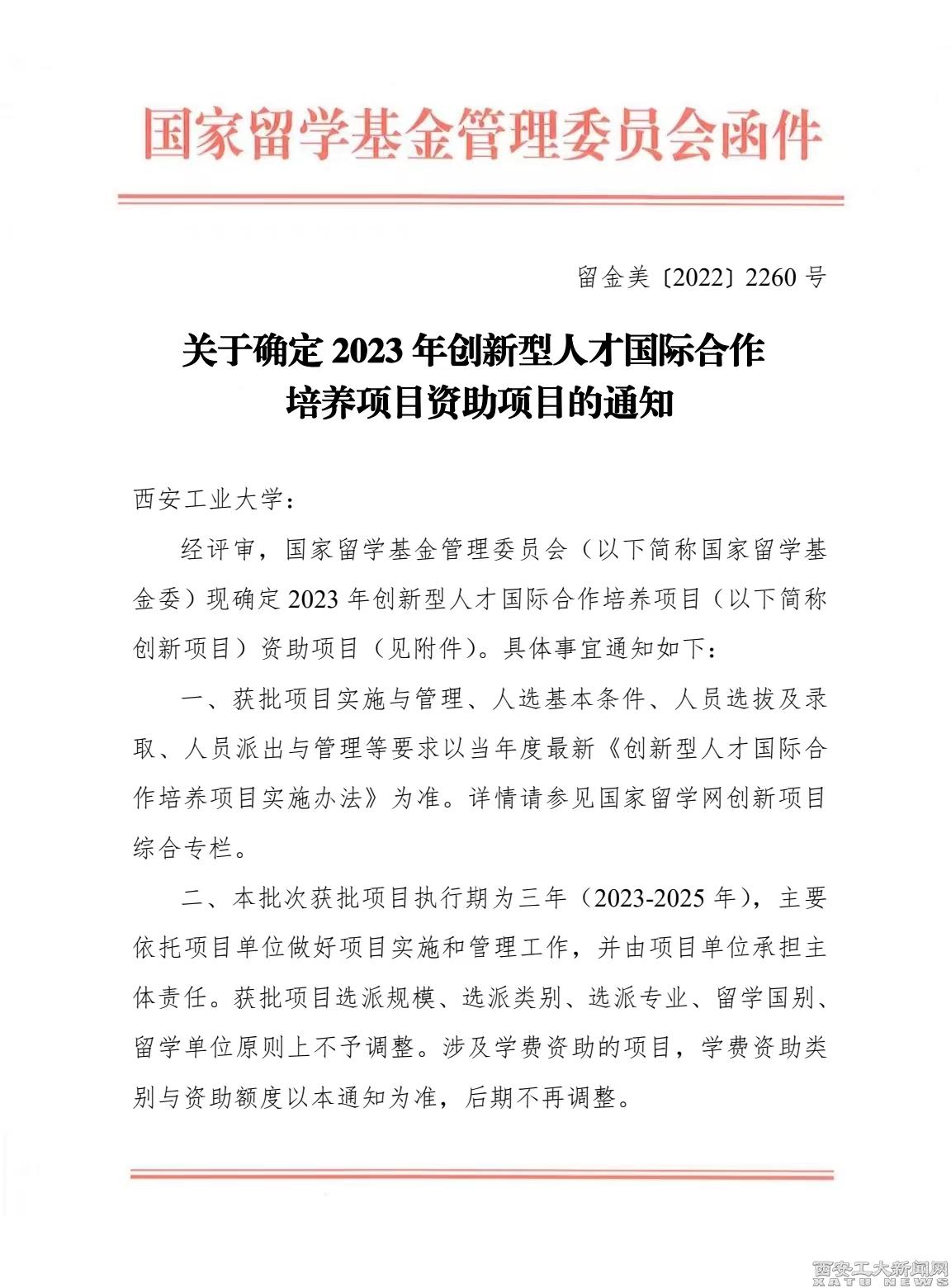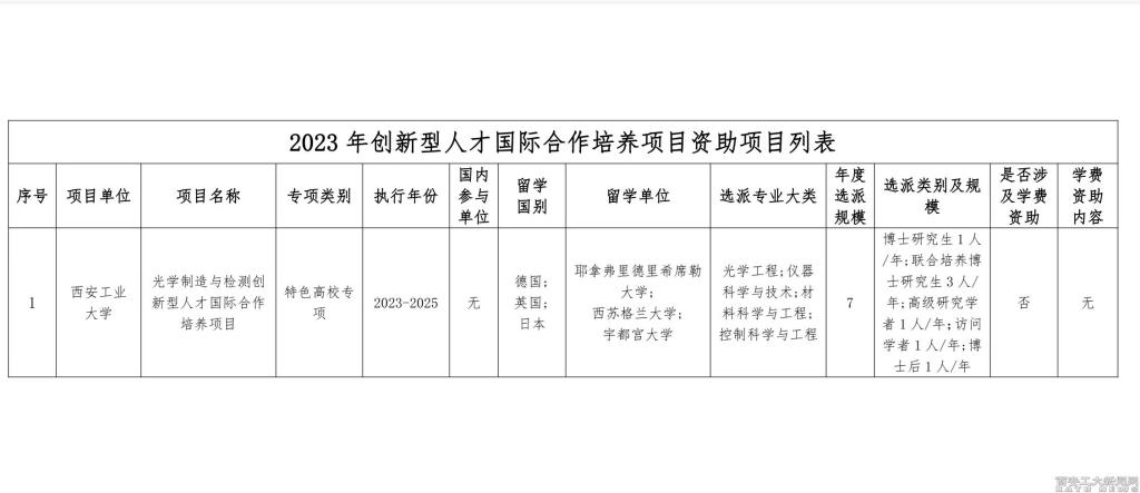 (本网讯)近日,国家留学基金委于公布了2023年创新型人才国际合作培养项目立项名单。ac米兰刘卫国教授主持申报的“光学制造与检测创新型人才国际合作培养项目”成功获批。