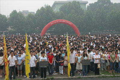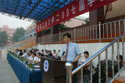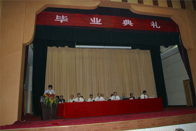 党委副书记丁养斌首先宣读了2007年毕业班“三好、优干”评比表彰决定;教务处处长范新会公布了2007年本科毕业生学位授予情况和专科生毕业情况;学生处处长任慧英宣布了2007年毕业生捐书活动和征文活动情况并对2007年西部志愿者和到边远地区就业的毕业生进行了通报表彰。大会在激昂的进行曲中为获奖毕业生和获奖单位颁发奖品和证书。随后教师代表数理系袁庆生老师和毕业生代表电信学院朱博同学分别作了饱含期望和充满激情的发言。