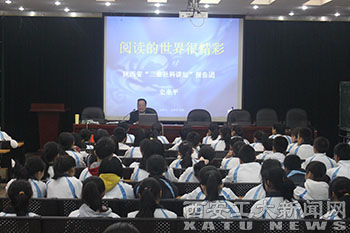 史来平从习近平总书记“论学习与阅读”讲起,阐述了“交流出思想”、“我爱阅读思想共舞”、“阅读的社会背景”等问题,最后落实到“中学生为什么要努力阅读”和“怎样阅读”。在讲座中,史教授还穿插了故事及自己丰富的个人经历,对同学们进行了深入浅出又饶有趣味的阅读意义指导。