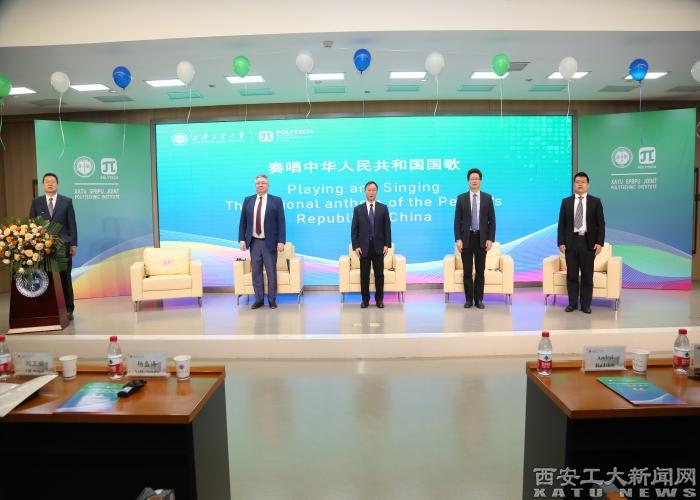 杨盛涛、刘卫国、安德烈·鲁德斯科伊和德米特里·阿森涅夫共同为西安圣彼得堡理工学院揭牌。