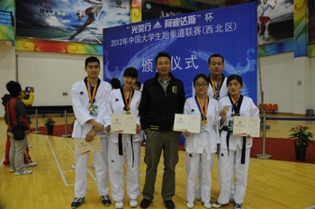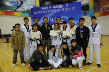 (本网讯)11月5日,“光荣行”阿迪达斯杯2012年中国大学生跆拳道西北区联赛在陕西省西安科技大学体育馆落下帷幕。ac米兰官方网站获得男子团体第四名,女子团体第三名。