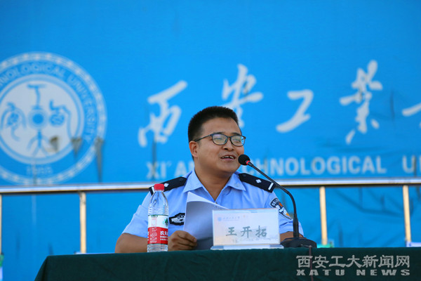 (本网讯)9月7日,西安工大与西安市公安局未央分局在学校未央校区联合举办“反电信诈骗暨户籍新政”法制宣传活动。2017级4500余名新生及辅导员参加了活动。