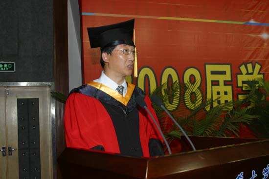 在2008届毕业生即将告别母校,满怀希望踏上新的人生里程之际,副校长张君安代表学校向全校5010名毕业生表示热烈祝贺,向为同学们的成长付出辛勤劳动的广大教职员工表示衷心的感谢。他殷切希望毕业生继续践行“敦德励学,知行相长”的校训、秉承和发扬“忠诚进取,精工博艺”的办学传统,做胸怀大志并脚踏实地的人,做德才兼备并勇于创新的人,做富有责任并勇挑重担的人,在新的起点上,不断克服困难,攀登高峰。