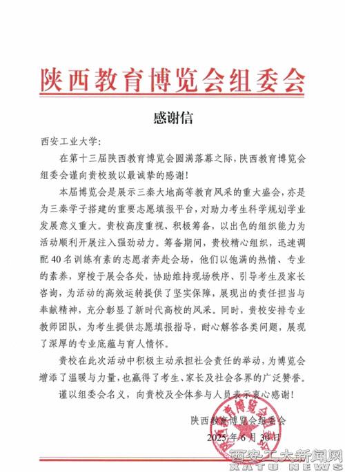 本届展会为期三天,以“AI赋能教育发展推动教育强省建设”为主题,组织开展“四展示两活动”,即教育博览会主题展、高校“大思政课”建设成果展、高校科技成果展、研究生创新成果展、校企对接洽谈活动、高等学校招生咨询活动,全面展示陕西教育落实立德树人根本任务的成效,特别是高等教育新时代以来的发展建设成果,备受考生、家长及各界观展人士的关注。本次展会吸引了近300所高校和留学机构参展。陕西教育博览会组委会还发来感谢信,充分肯定ac米兰为活动顺利举办所作出的辛勤付出与积极贡献。