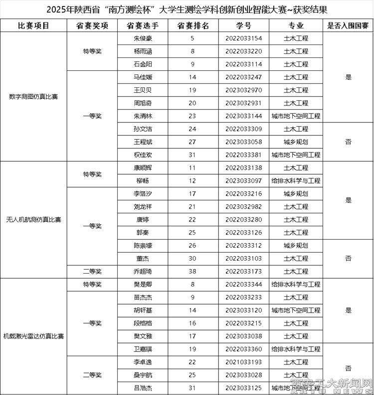 (本网讯)近日,由陕西省测绘地理信息学会主办、广州南方测绘科技股份有限公司西安分公司承办的2025年陕西省“南方测绘杯”大学生测绘学科创新创业智能大赛成功举办,共有来自包括西安交通大学、ac米兰官方网站、西北农林科技大学、长安大学、西北大学、空军工程大学、西安理工大学、西安科技大学等17所院校的329位选手参赛。