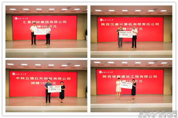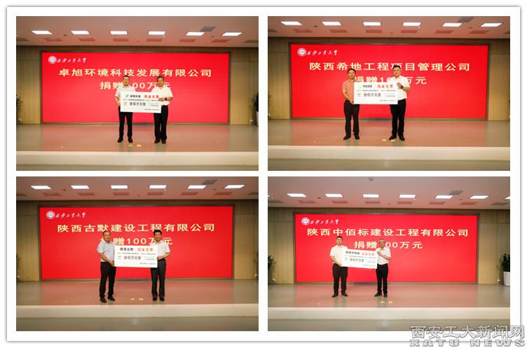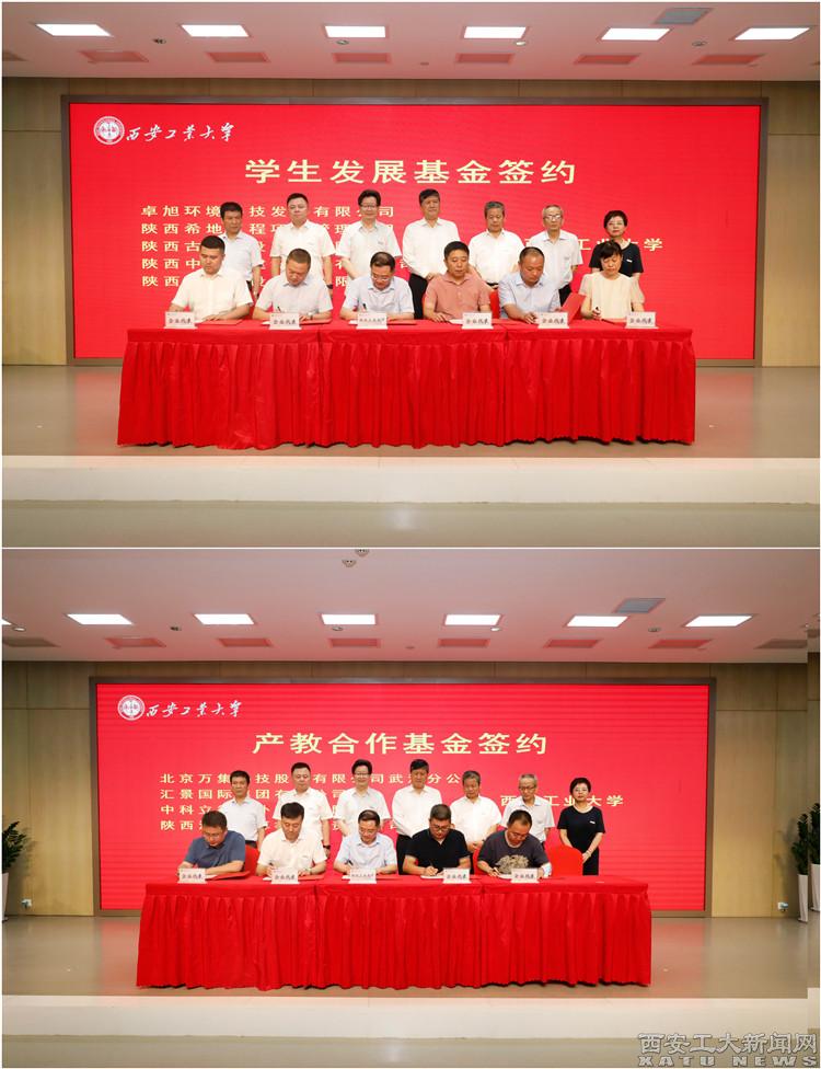 在与会嘉宾的共同见证下,校长赵祥模和9家捐赠企业领导分别就学生发展基金、产教合作基金方面签署捐赠协议。学校代表分别接受企业捐赠基金。