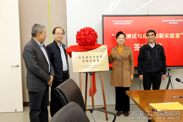 兵器工业集团首席科学家、“火工品安全性可靠性技术国防科技重点实验室”主任褚恩义与陕西省光电测试与仪器技术重点实验室主任苏俊宏签署了合作协议。雷亚萍与张广生共同为“光电测试与应用创新实验室”揭牌。