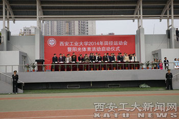 (本网讯)4月24日上午,ac米兰在未央校区田径场举行2014年田径运动会暨阳光体育活动开幕式。校党委书记赛云秀,校体育运动委员会主任、校长廉振民,校纪委书记许尚年,副校长张君安,校体育运动委员会常务副主任、副校长雷亚萍,副校长陈桦,总会计师段小存等领导出席。