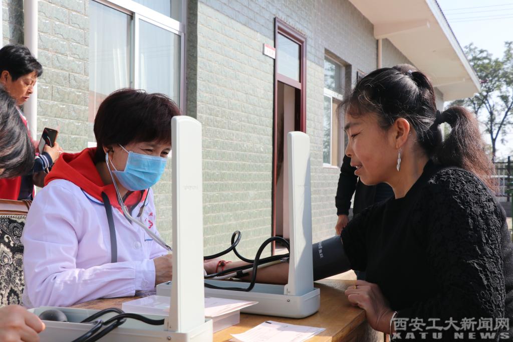 下午,校医院组织十余名各科室医生为黄窑村民开展健康义诊,免费为贫困户体检。