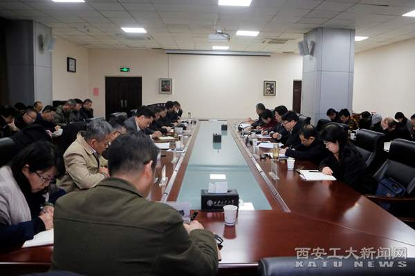 校党委书记、校主题教育领导小组组长刘卫国对学校主题教育开展情况进行了总结。他指出,去年9月份以来,在省委主题教育第八巡回指导组的悉心指导下,学校党委按照“守初心、担使命,找差距、抓落实”的总要求,聚焦主题主线,坚持抓思想认识到位、抓检视问题到位、抓整改落实到位、抓组织领导到位,把学习教育、调查研究、检视问题、整改落实贯穿全程,充分挖掘各种资源、丰富形式载体,上下同步、统筹推进,取得阶段性成效。在做法上,组织领导有力,工作推动有效;学习教育扎实,学习形式丰富;调查研究深入,调研成果丰富;找准找实症结,检视问题到位;坚持边查边改,整改贯穿始终;学做结合紧密,促发展成效显著。刘卫国在讲话中也谈了开展主题教育的几点收获体会:聚焦管党治党、从严治党,全面提升党建工作质量;聚焦为党育人、为国育才,坚决落实立德树人根本;聚焦办学传统、兵工特色,加快推进教育事业发展。针对下一步工作,他要求,要持续深化理论学习;夯实基层党组织责任;认真做好整改落实;巩固主题教育成果。他强调,要持续深入学习贯彻习近平总书记关于主题教育的重要讲话、重要指示批示精神,切实增强政治责任感和历史使命感,巩固主题教育成果,深化校内综合改革,提高教育教学质量,以“不忘初心、牢记使命”的实际行动,为建设高水平大学贡献力量,为陕西追赶超越贡献力量。