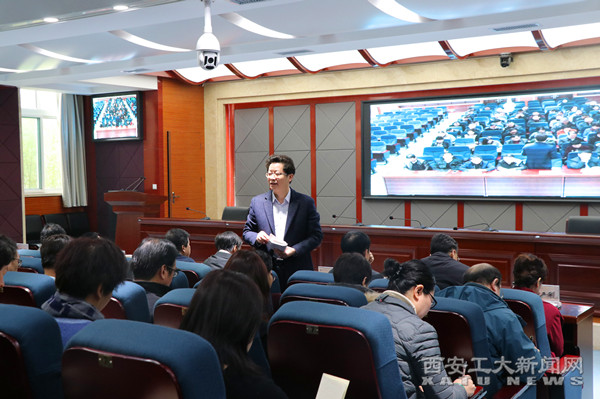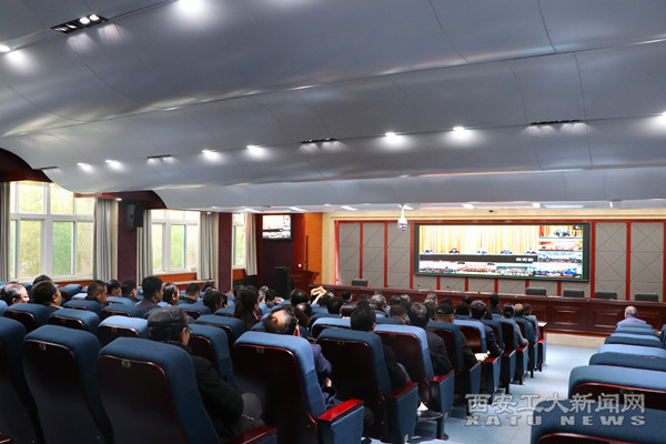 ac米兰设分会场组织收看2019年教育系统全面从严治党工作视频会议,校领导班子成员,各职能处室负责人,各学院院长、书记参加了学习。