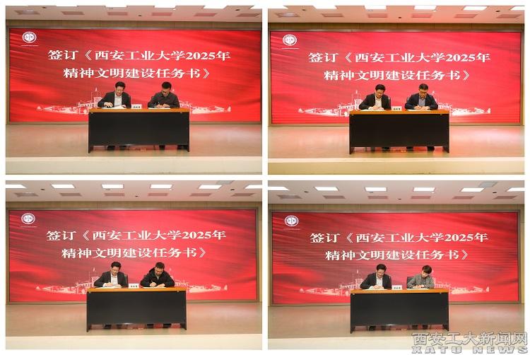 刘卫国分别与机电工程学院、文学院、校工会、总务处的负责人签订了《ac米兰官方网站2025年精神文明建设任务书》。