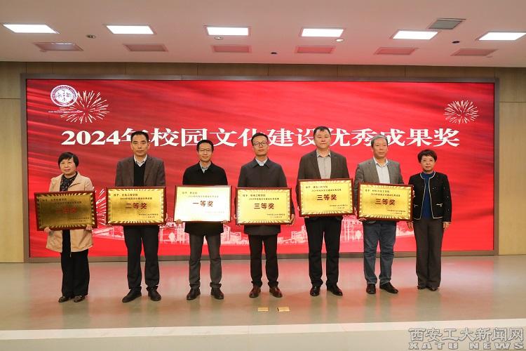 校领导分别为获得2024年“文明学院”“文明处室”、宣传思想文化工作先进集体、“十佳新媒体”和校园文化建设优秀成果奖的代表颁奖。