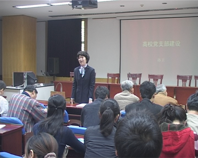 本次培训共分为三讲:党委委员、组织部长孙卫讲解了高校党支部的工作重点以及如何搞好党支部建设;组织部易超结合实际工作详细讲解了党员发展工作程序及应注意的问题;特邀省委党校副校长郑志飚教授做了十七大专题辅导。
