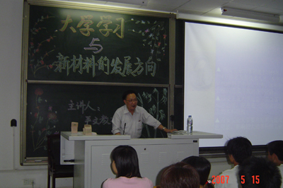在讲座过程中,严文教授提出了对大家学习上的要求以及完成学业的几点方法。同时,又为大家介绍了新材料的应用及发展趋势。严文教授的报告,语言诙谐幽默、内容严谨充实,精彩的讲述博得了在场所有同学的掌声。在报告的最后,严文教授也对在座的同学提出了殷切的期望,希望大家能学到知识,成为一个高素质的人,并与在座的同学进行了互动。