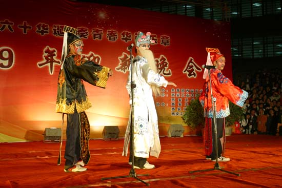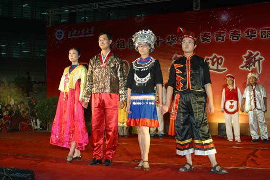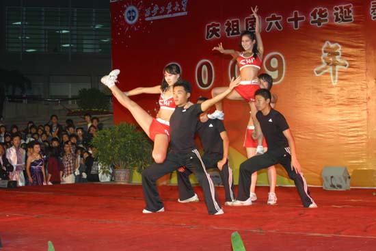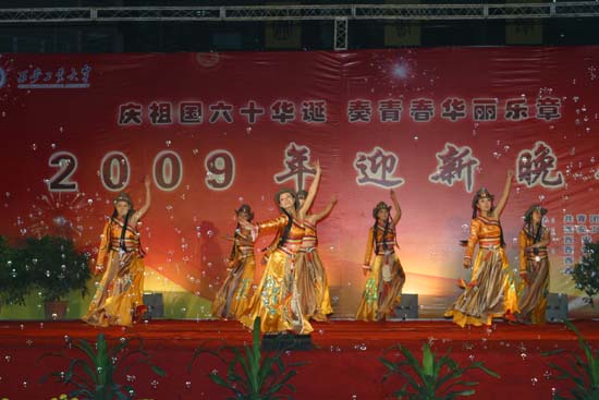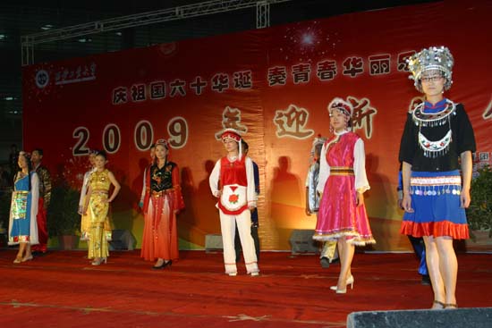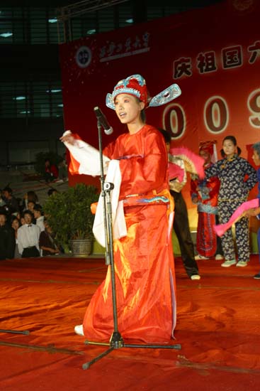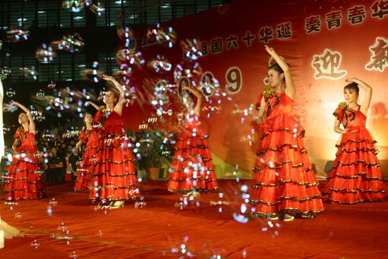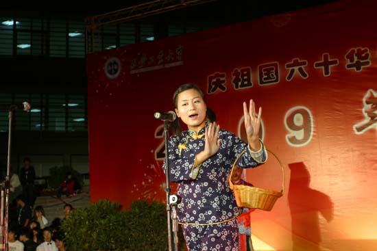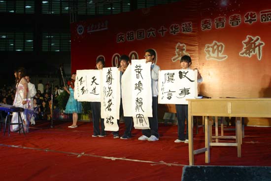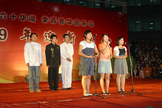 晚会以“庆祖国六十华诞 奏青春华丽乐章”为主题,分为“歌唱祖国”、“绽放青春”两个篇章。节目形式多样,有歌曲、舞蹈、戏曲联唱、乐器演奏、服装展示、街舞、舞台剧、合唱等。学生家长演唱的《儿行千里》,表达了对广大学子的殷切希望与深深祝福;教工团干部、辅导员老师表演的民族服装展示节目将晚会推向高潮,观众为老师们的精彩表演报以热烈掌声。动听的歌曲,精彩的舞蹈,幽默的话剧,让现场掌声、欢呼声经久不息。最后,晚会在大合唱《歌唱祖国》中圆满结束。