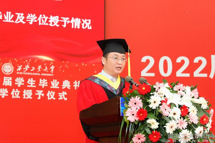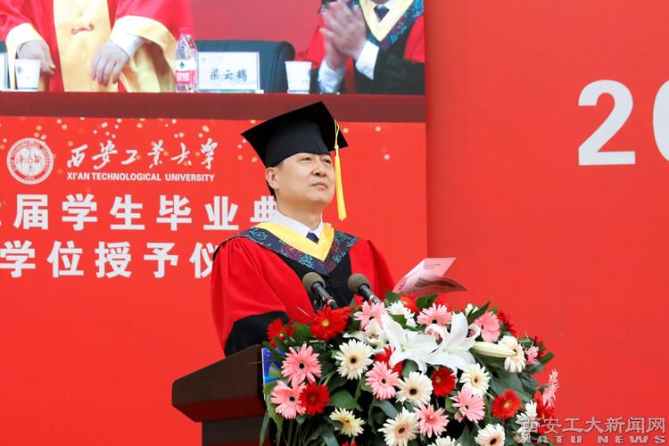 校党委书记刘卫国、校长赵祥模、校党委副书记王军周、校党委副书记梁云鹤、副校长刘发林、副校长刘卜、副校长陈建、总会计师段小存和杰出校友代表马永社出席本次典礼,学校相关职能部门和各学院负责人共同观礼,欢送5335名毕业生奔赴人生新征程。副校长张群主持典礼。