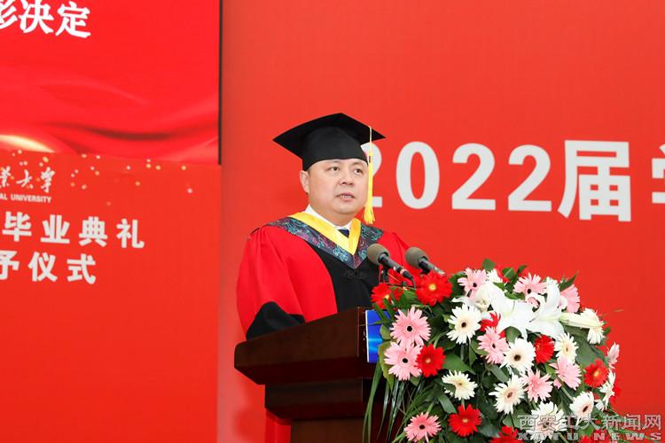 赵祥模指出,2022届毕业生与时代共命运,与祖国同发展,见证了“四史”上的诸多重要时刻,也用担当、奋斗和奉献谱写了青春赞歌,实现了德智体美劳的全面发展。