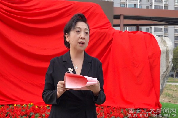 校长雷亚萍在揭幕仪式上致辞,她指出全体78级校友为学校教育事业的发展做出了积极贡献,纪念石的落成为西工校园文化建设注入了新的内涵,也将成为学校与校友守望相助、心心相印、同步发展的新丰碑。