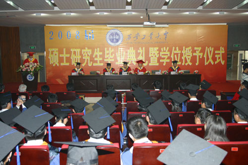 (本网讯) 5月27日上午,ac米兰官方网站2008届硕士研究生毕业典礼暨学位授予仪式在未央校区隆重举行,全校237名应届硕士毕业生喜气洋洋参加了典礼。学校党委书记赛云秀、校长刘江南、副书记丁养斌、副校长刘卫国、张君安等出席典礼。校长助理、研究生部主任陈桦主持仪式。