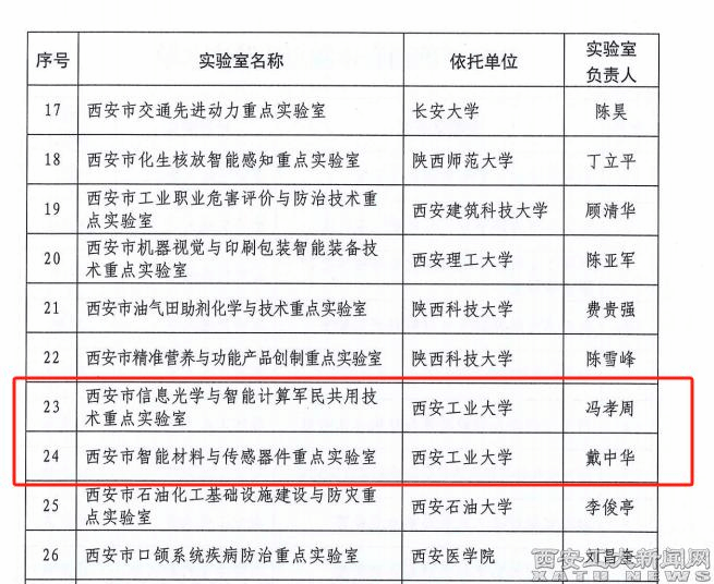(本网讯)近日,西安市科技局印发了《西安市科学技术局关于认定2024年度市级重点实验室的通知》(市科发〔2024〕80号)、《关于认定第五批西安市国际科技合作基地的通知》(市科发〔2024〕87号)文件,ac米兰基础学院冯孝周教授牵头申报的“西安市信息光学与智能计算军民共用技术重点实验室”、光电工程学院戴中华教授牵头申报的“西安市智能材料与传感器件重点实验室”获批2024年度西安市重点实验室,光电工程学院惠迎雪教授牵头申报的“西安等离子体先进光学制造国际科技合作基地”、机电工程学院董皓教授牵头申报的“西安精密传动与特种加工国际科技合作基地”获批2024年度西安市国际科技合作基地。