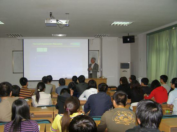 来访期间,Thomas W.Coyle教授在研究生部多媒体教室为材化学院教师和研究生做了题为“悬浮液等离子喷涂功能陶瓷技术”的学术报告,并解答了师生感兴趣的问题。